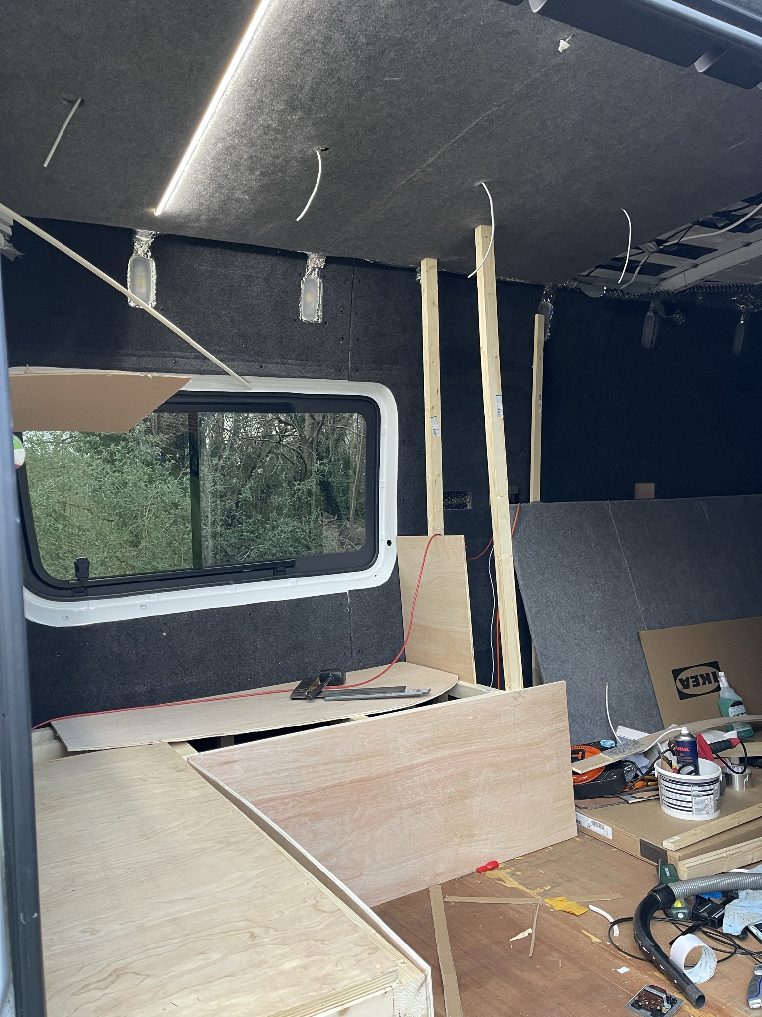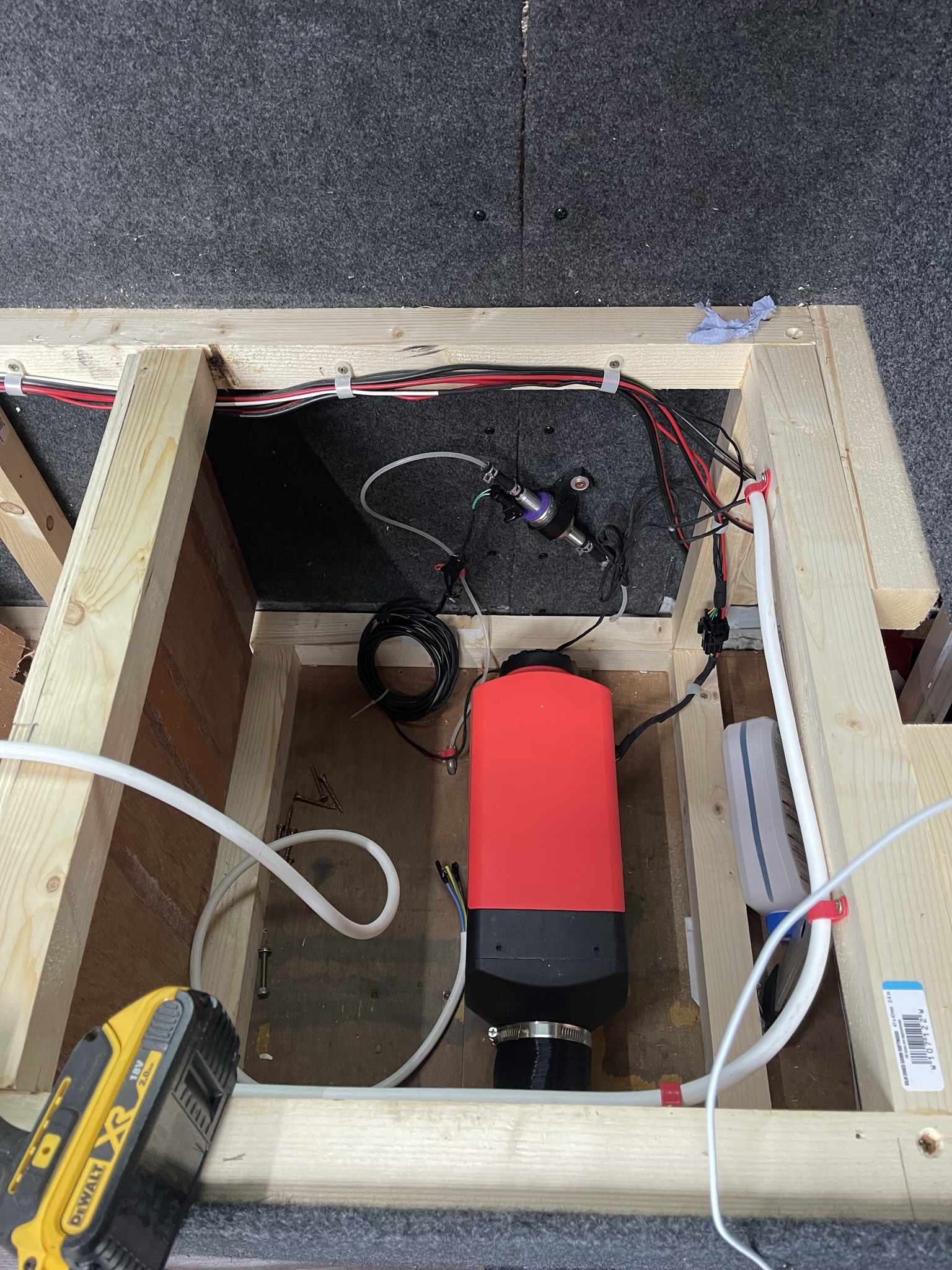 Installing the heater and aux battery charging system was next along with the cooker sink and led lights